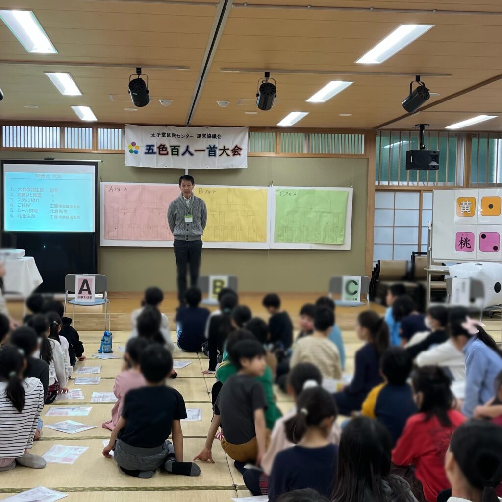 本日、地域の小学校が集まる五色百人一首大会が太子堂区民センターにて開催されました。
