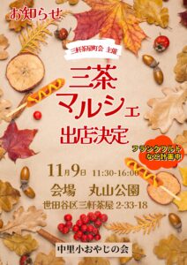 11/9(日) 三茶マルシェ出店→中止となりました 中里小おやじの会